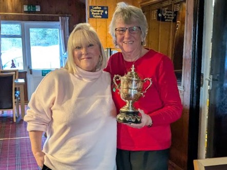 Ladies’ Captain, Iris, awards Bernie with the Cup for this year’s Most Improved Lady Player.